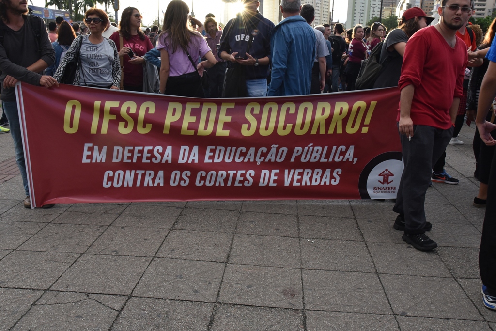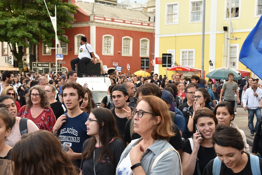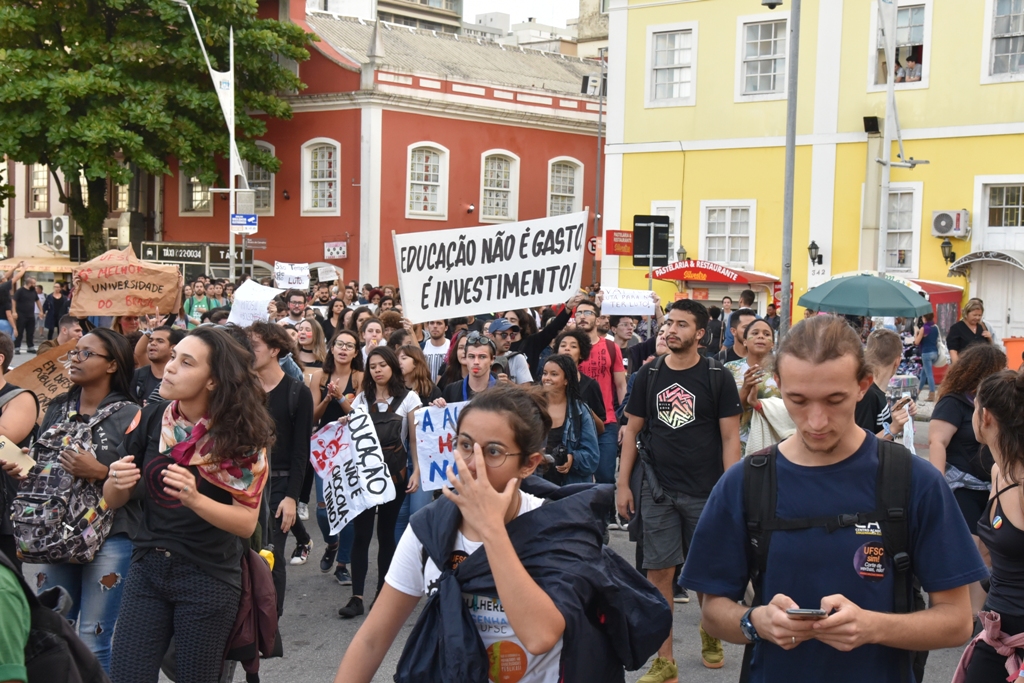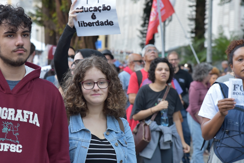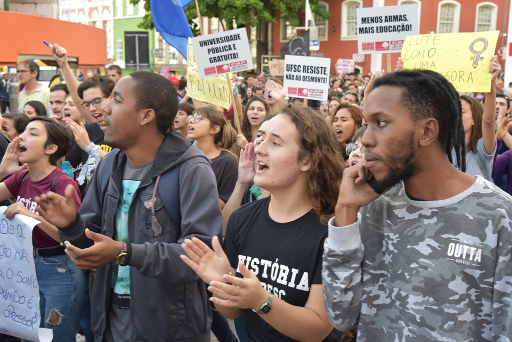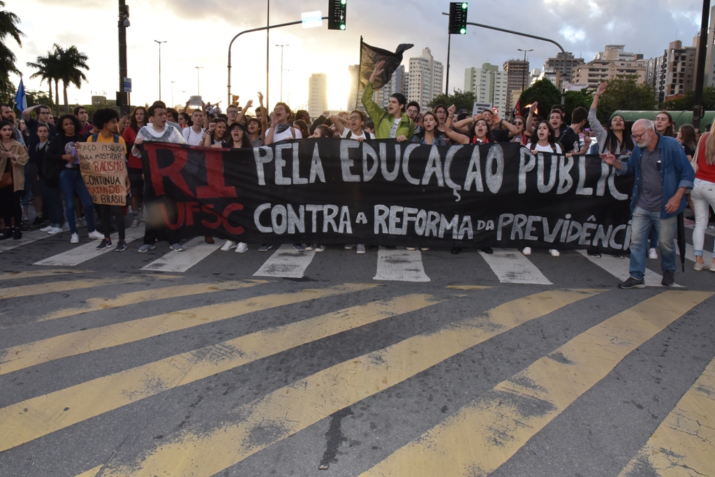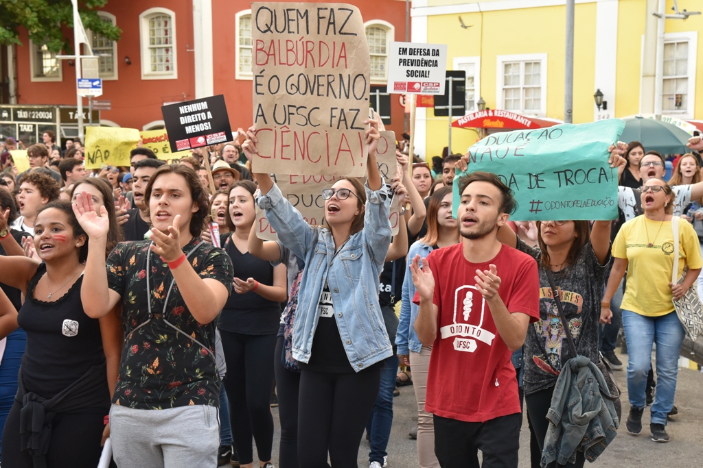 Milhares de manifestantes foram às ruas de Florianópolis nesta quarta-feira, 15/05, Chapecó, Blumenau, Criciúma, Tubarão, Lages e Joinville, entre outras cidades do Estado, contra o corte de recursos em universidades e institutos federais. Também se juntou à pauta a luta contra a ‘reforma’ da Previdência da PEC 6/2019.
