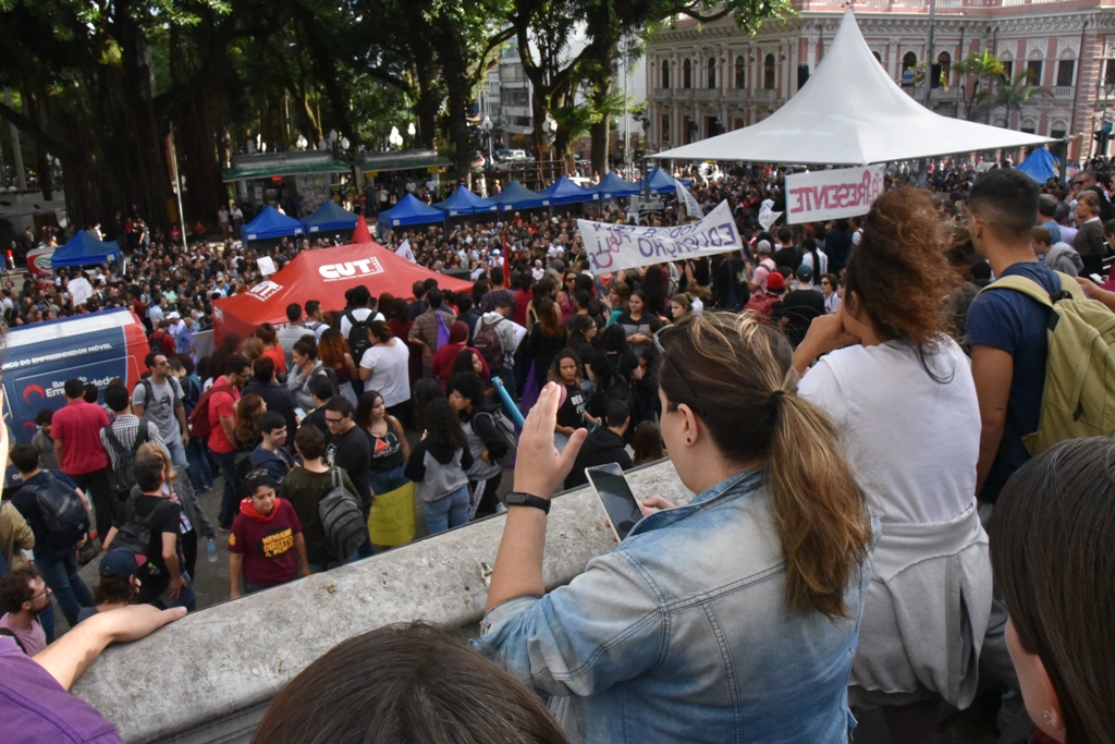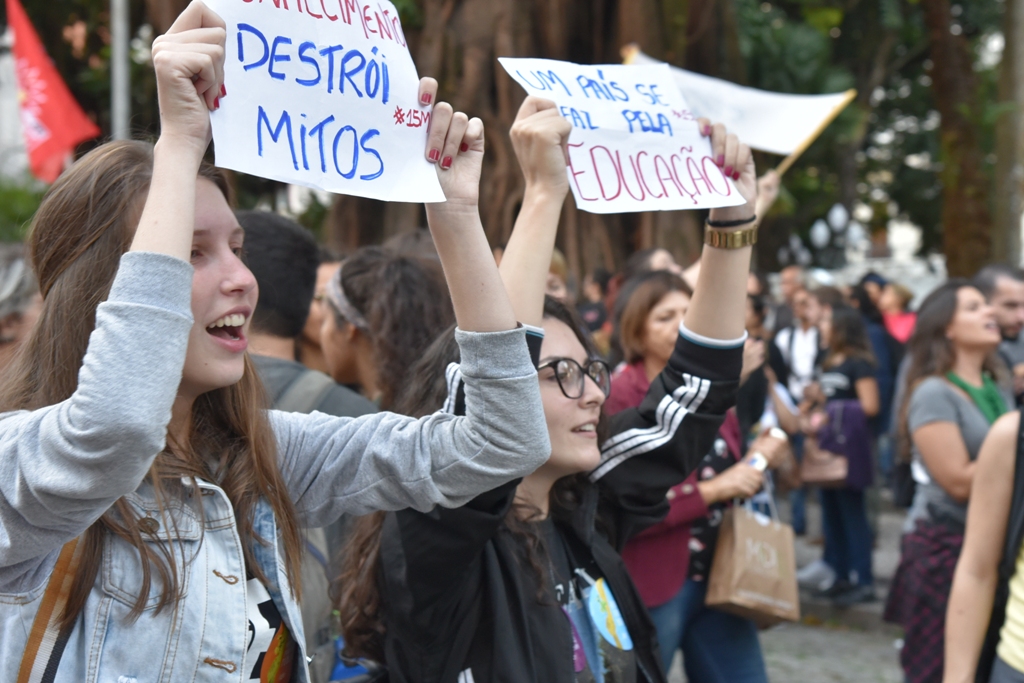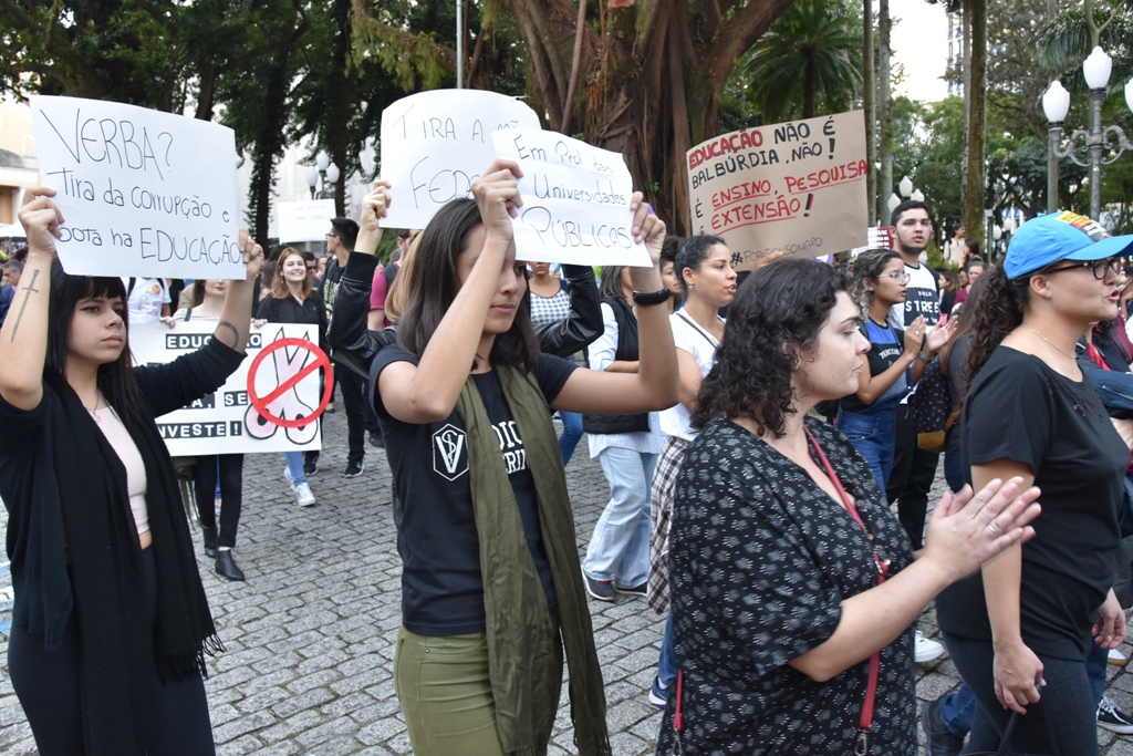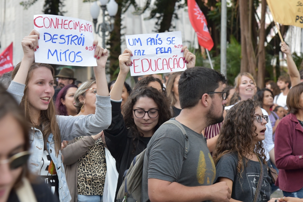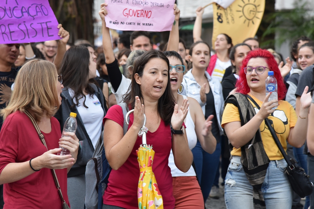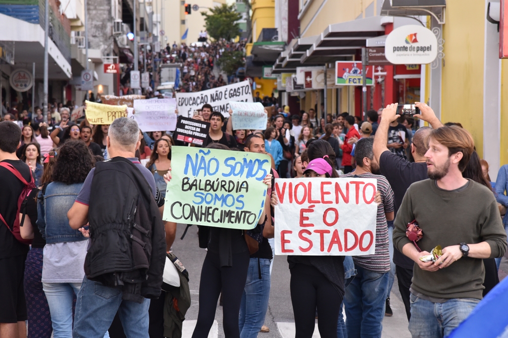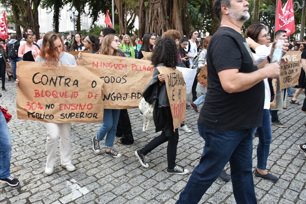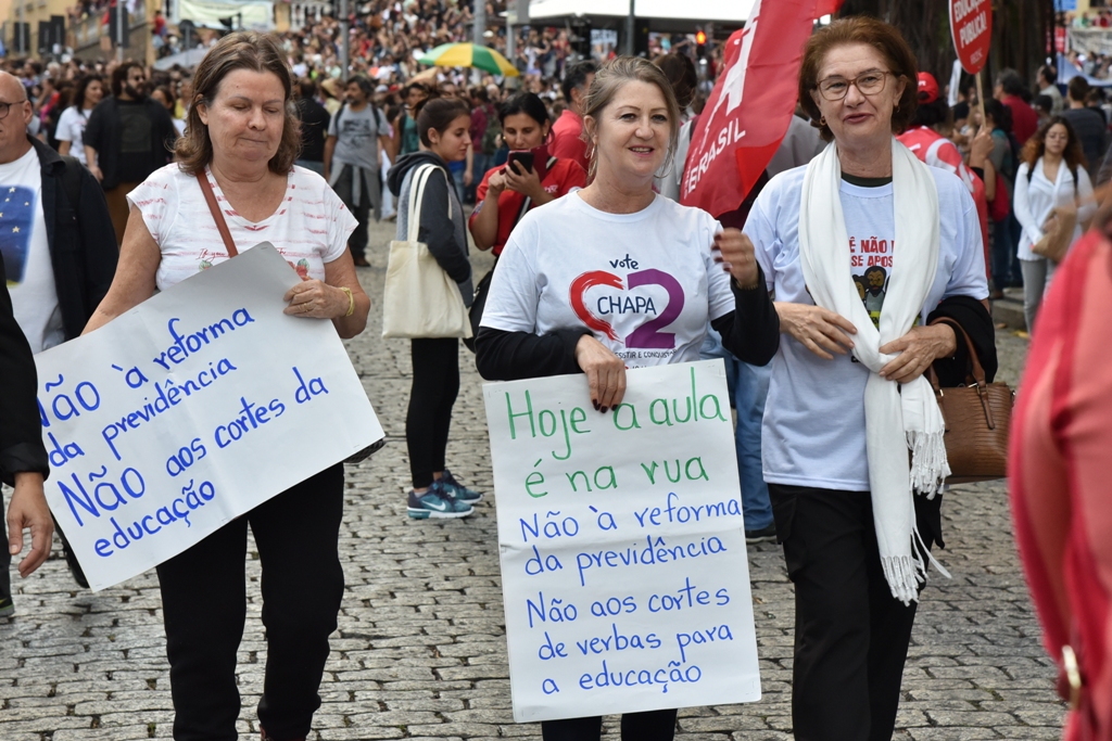 Milhares de manifestantes foram às ruas de Florianópolis nesta quarta-feira, 15/05, Chapecó, Blumenau, Criciúma, Tubarão, Lages e Joinville, entre outras cidades do Estado, contra o corte de recursos em universidades e institutos federais. Também se juntou à pauta a luta contra a ‘reforma’ da Previdência da PEC 6/2019.