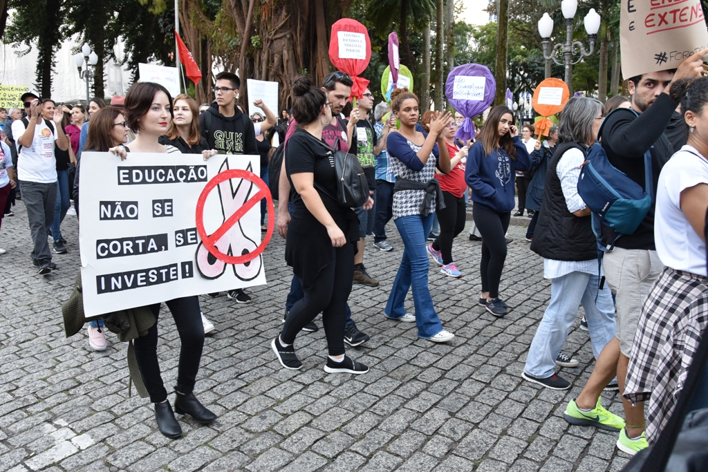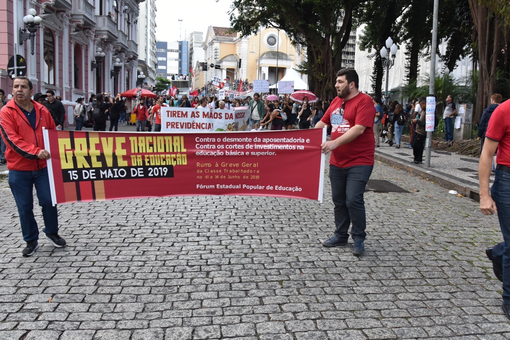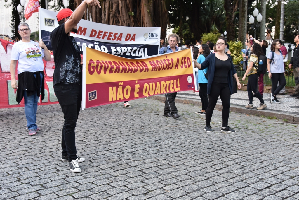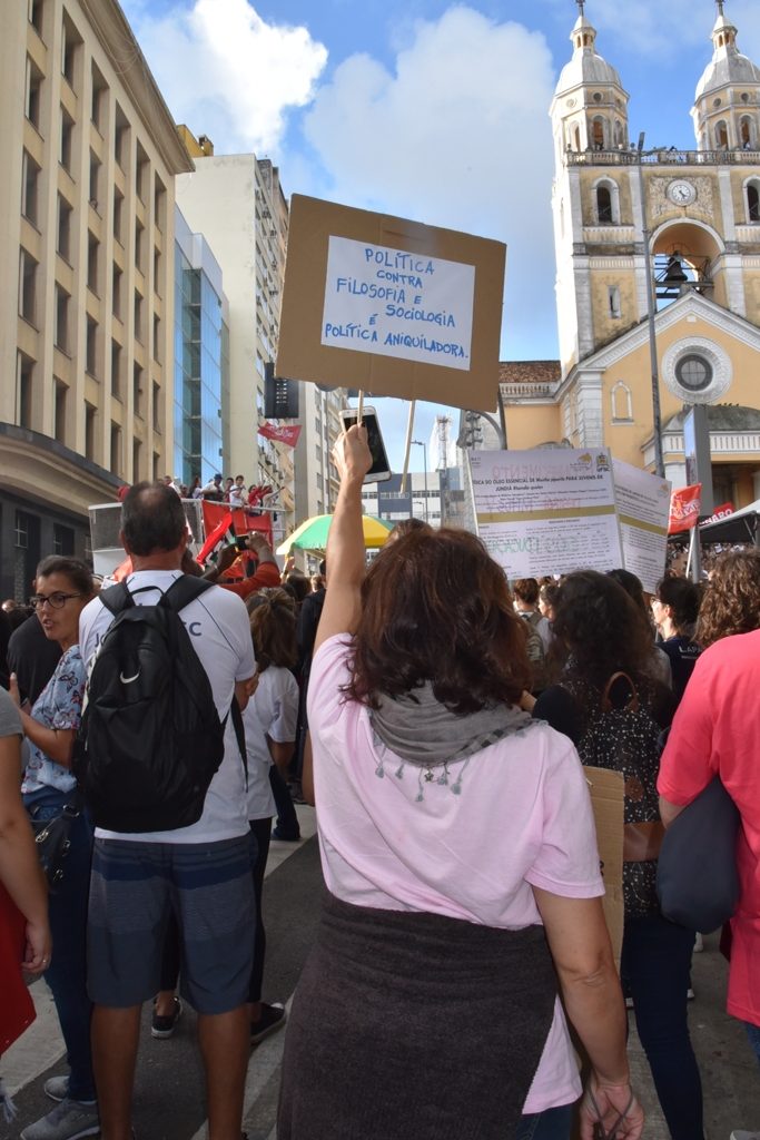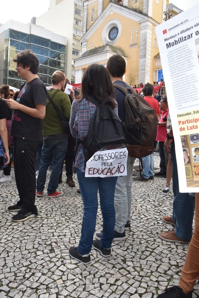 Manifestantes foram até a frente da Secretaria de Estado da Educação, na Rua Antônio Luz, a uma quadra da catedral. No dia anterior à manifestação, a Secretaria avisou por ofício que descontaria o dia de trabalho dos manifestantes. Professores e estudantes da rede estadual pautaram suas manifestações contra a reforma do ensino médio, terceirizações, privatização de redes de ensino, fechamento de escolas e de salas de aula, contratações de professores em regimes extremamente precários e a não realização de concursos públicos.