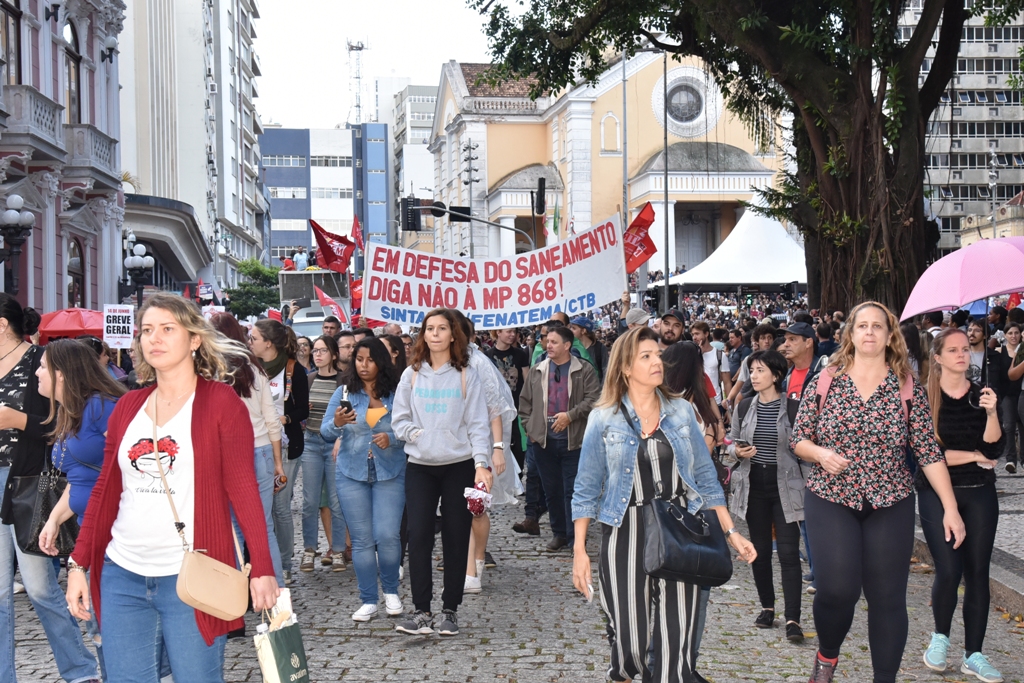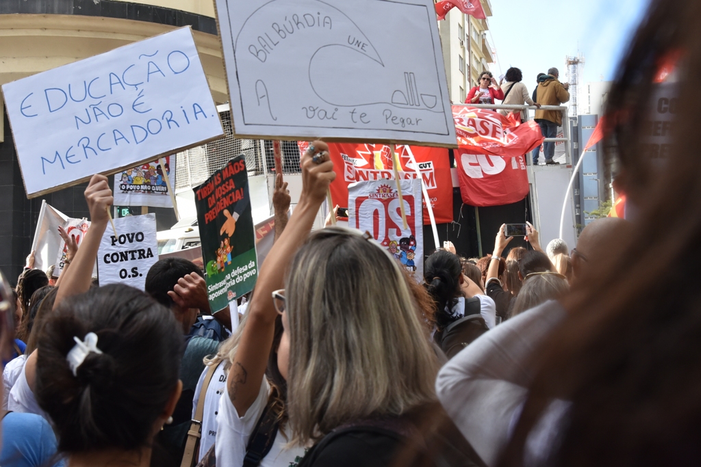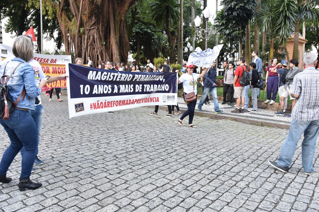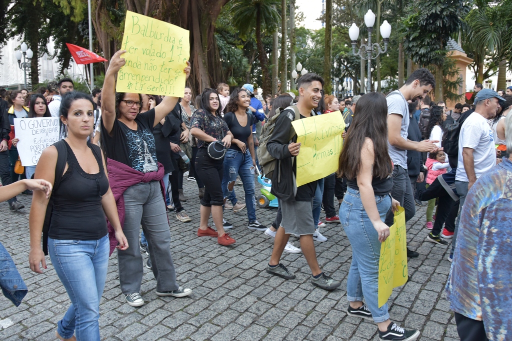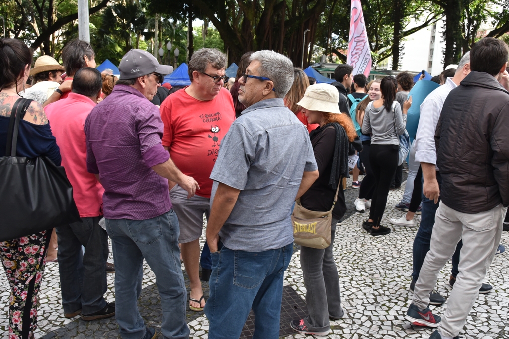 Manifestantes foram até a frente da Secretaria de Estado da Educação, na Rua Antônio Luz, a uma quadra da catedral. No dia anterior à manifestação, a Secretaria avisou por ofício que descontaria o dia de trabalho dos manifestantes. Professores e estudantes da rede estadual pautaram suas manifestações contra a reforma do ensino médio, terceirizações, privatização de redes de ensino, fechamento de escolas e de salas de aula, contratações de professores em regimes extremamente precários e a não realização de concursos públicos.