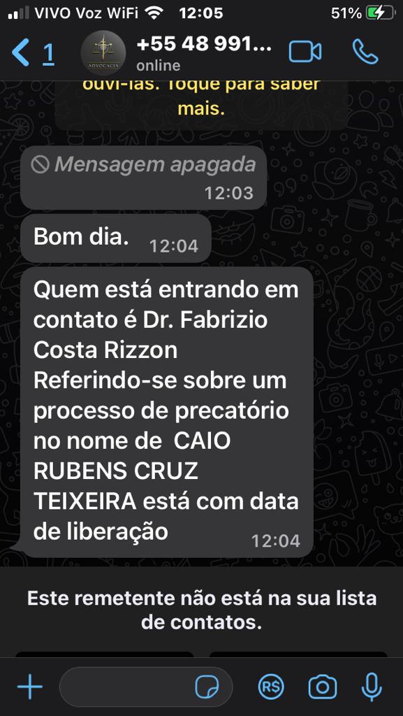 O Escritório Pita Machado emite novo alerta para tentativa de golpes, especialmente, pelo WhatsApp envolvendo o nome do escritório e um dos sócios, Fabrizio Costa Rizzon. Os estelionatários enviam mensagens se passando pelos advogados e pedindo dinheiro para liberar pagamentos de supostas ações de precatórios.