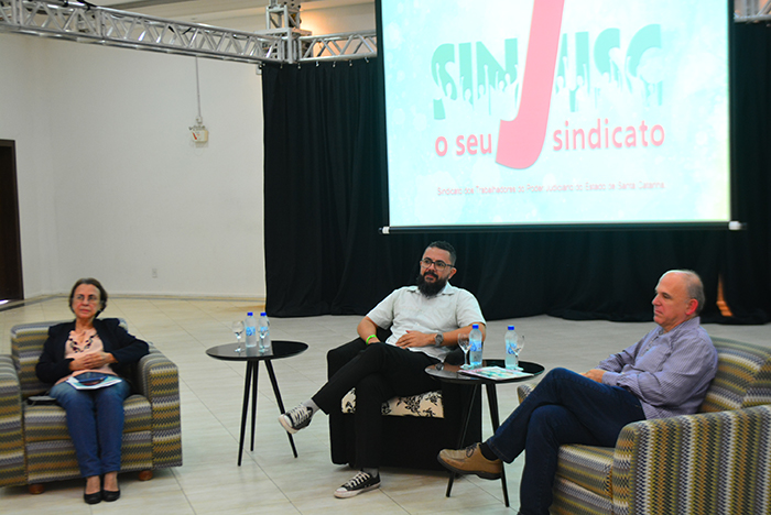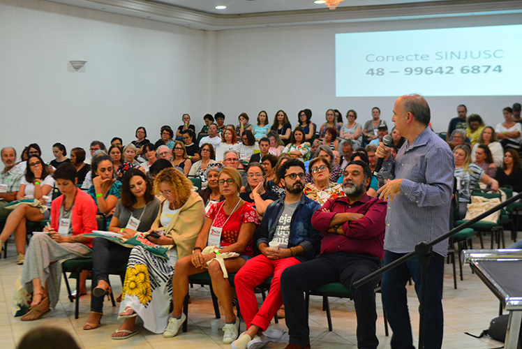A saúde do trabalhador foi tema no terceiro dia de atividades no 8º Congresso dos trabalhadores e trabalhadoras do judiciário catarinense. A abordagem do assunto foi realizada por dois especialistas em medicina do trabalho. A professora de pós-graduação da Faculdade de Ciências Médicas da Santa Casa de São Paulo, Dra. Margarida Barreto, e Dr. Roberto Ruiz, médico do trabalho da Universidade Federal de Santa Catarina.