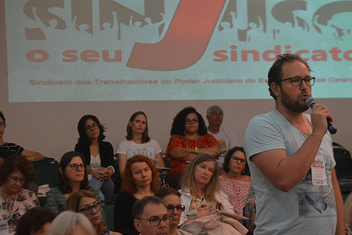O tema “O Brasil e o mundo da nova era” marcou o início da série de debates previstos na programação do 8º Congresso do Sinjusc, no dia 2 de maio em Itajaí.