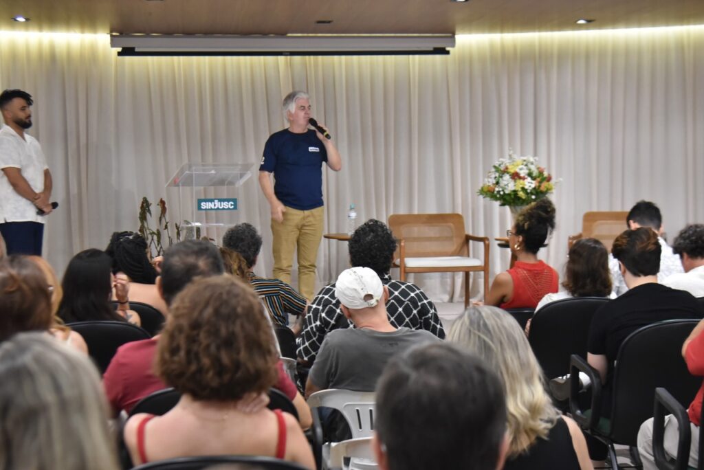 Por fim, a presidenta do SINJUSC citou os nomes dos trabalhadores e das trabalhadoras do SINJUSC que estiveram lado a lado com a diretoria nos últimos anos e agradeceu pelo “companheirismo nos dias bons e nos dias difíceis”. Carol falou ainda sobre a necessidade do movimento sindical investir mais tempo e energia no cuidado da saúde física e mental, não só das categorias representadas pelas entidades, mas, também, das direções sindicais.