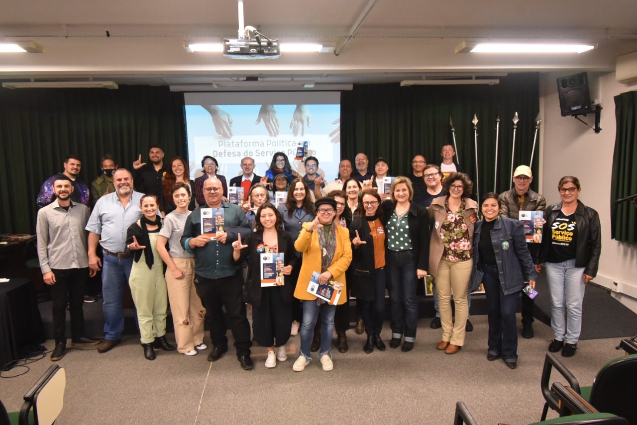 Ao todo, 40 candidatos e candidatas às eleições 2022 comprometeram-se em defender o serviço e os trabalhadores públicos ontem (13/09), em evento histórico e lotado no auditório do SINJUSC, durante o lançamento da Plataforma Política do Fórum Catarinense de Defesa do Serviço Público para as eleições de 2022.