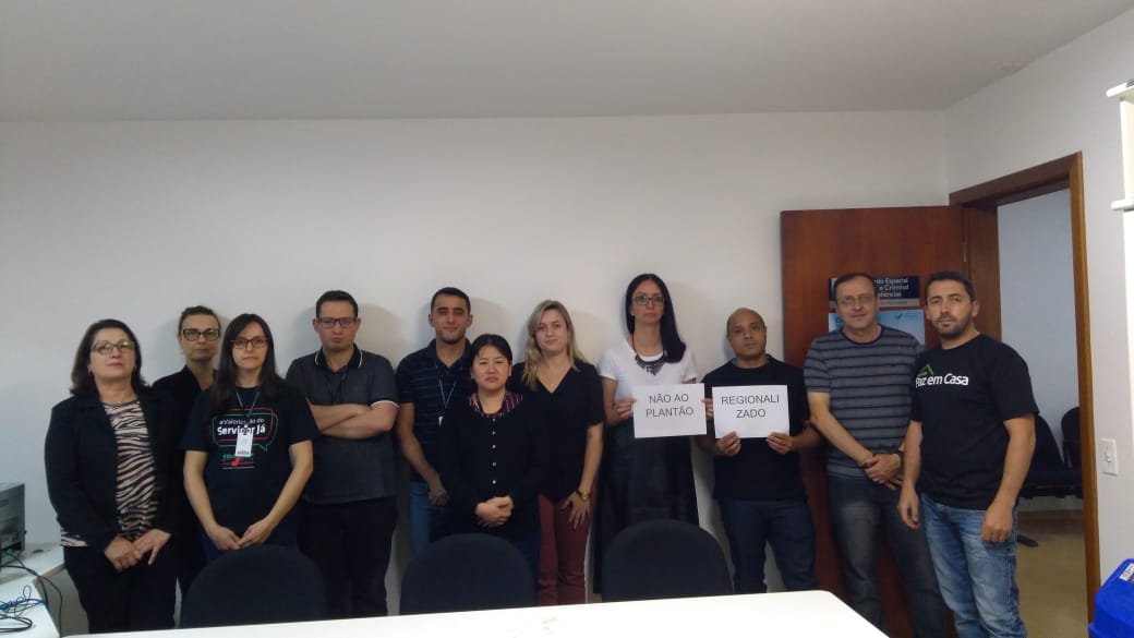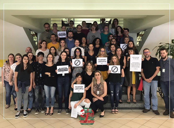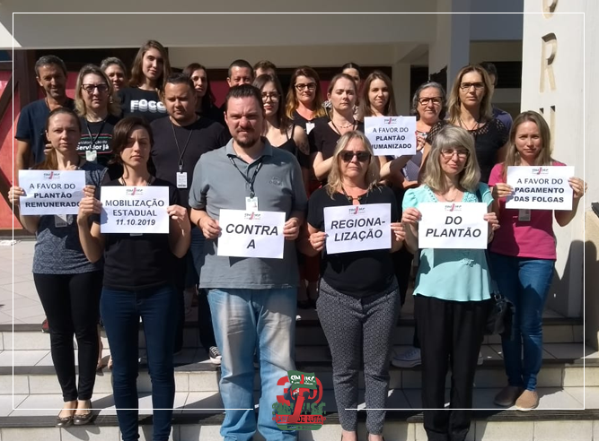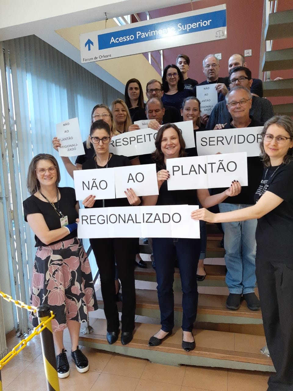 Os colegas de diversas comarcas já se reuniram e estão em vigília contra a regionalização do Plantão. E aí na sua comarca, já começou a vigília? Participe! Faça uma foto com cartaz e envie pro SINJUSC pelo número: 48 – 9 9642 7495.