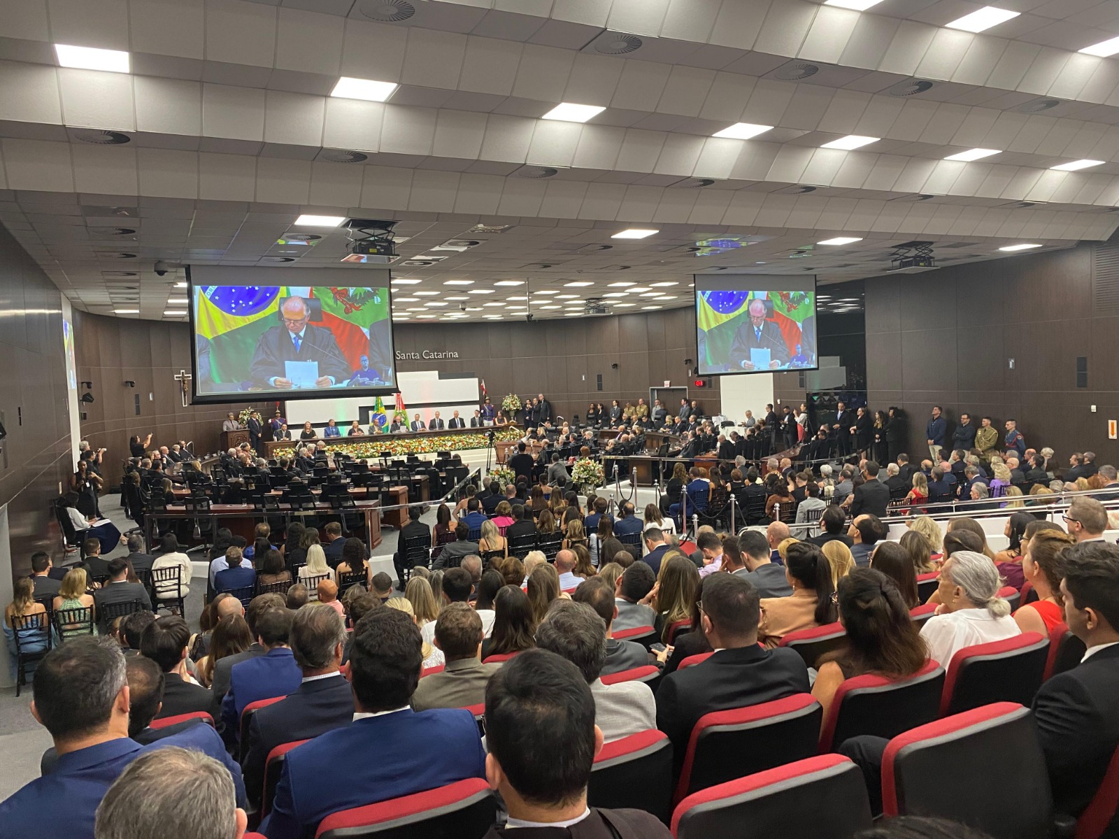 Durante a cerimônia de posse realizada na sexta, dia 6 de fevereiro, o novo presidente do TJSC, Des. Rubens Schulz, disse que “a humanização da justiça começa dentro de casa e transborda no atendimento. Precisamos tratar uns aos outros com respeito, cordialidade e empatia. Produtividade alguma vale a pena se custar o adoecimento. Produtividade e bem-estar devem andar juntos. Valorização das pessoas não será um capítulo à parte na nossa gestão. Ela perpassará todos os projetos e dará sentido a cada iniciativa”.
