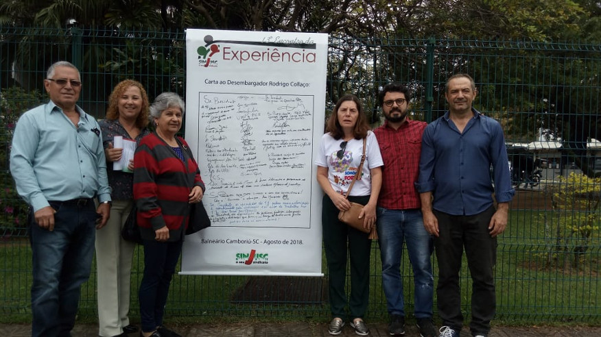 A Diretoria do SINJUSC e o Núcleo dos Aposentados, representados por Rosaleine Berta Soares, Mário Luiz de Oliveira e Apolônia Cardoso, entregaram a Carta de Balneário Camboriú ao 2º vice-presidente do Tribunal de Justiça de Santa Catarina, desembargador Carlos Adilson. Também reforçaram o pedido de equiparação do auxílio médico-social com o auxílio-alimentação.