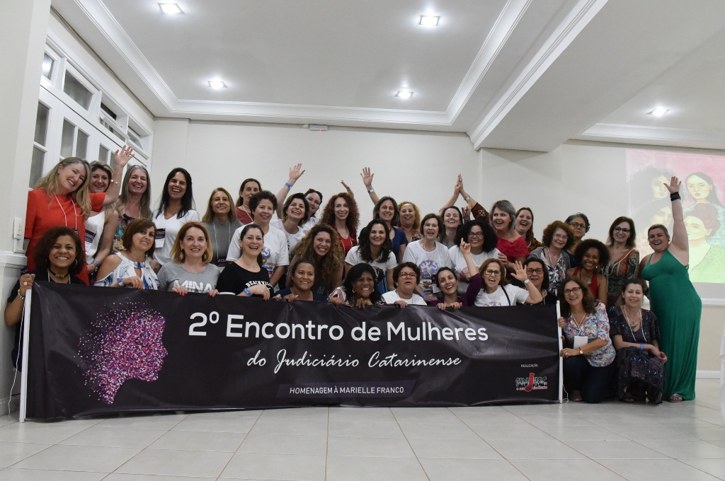 Realizado nos dias 21 e 22 de setembro, no Campeche em Florianópolis, o 2º Encontro das Mulheres do Judiciário Catarinense, que este ano homenageou a vereadora assassinada Mariele Franco. O evento contou com a presença de mais de 100 mulheres, entre trabalhadoras do nosso Estado, convidadas do Judiciário da Bahia, Paraná, da FENAJUD além de palestrantes e debatedoras.