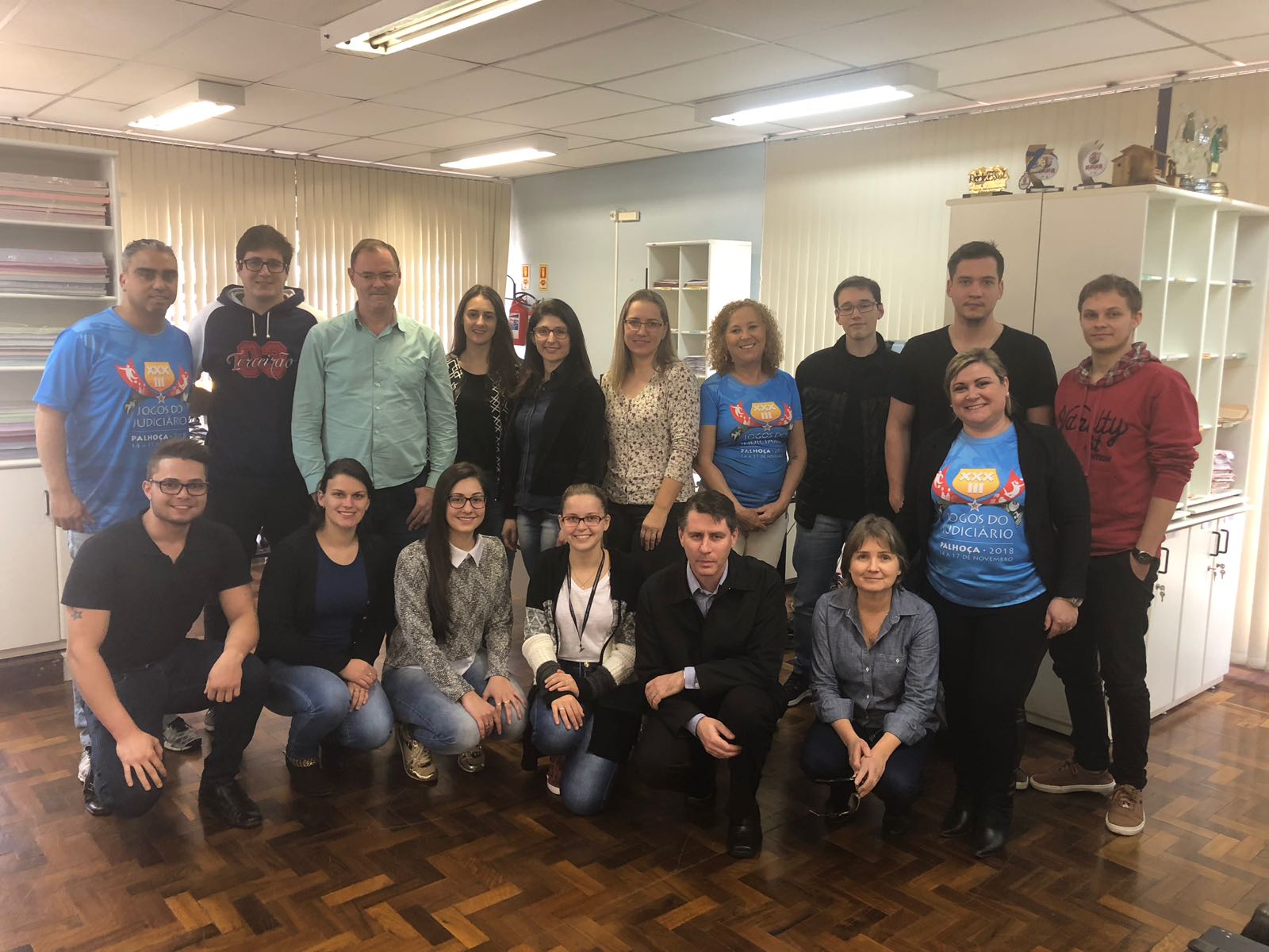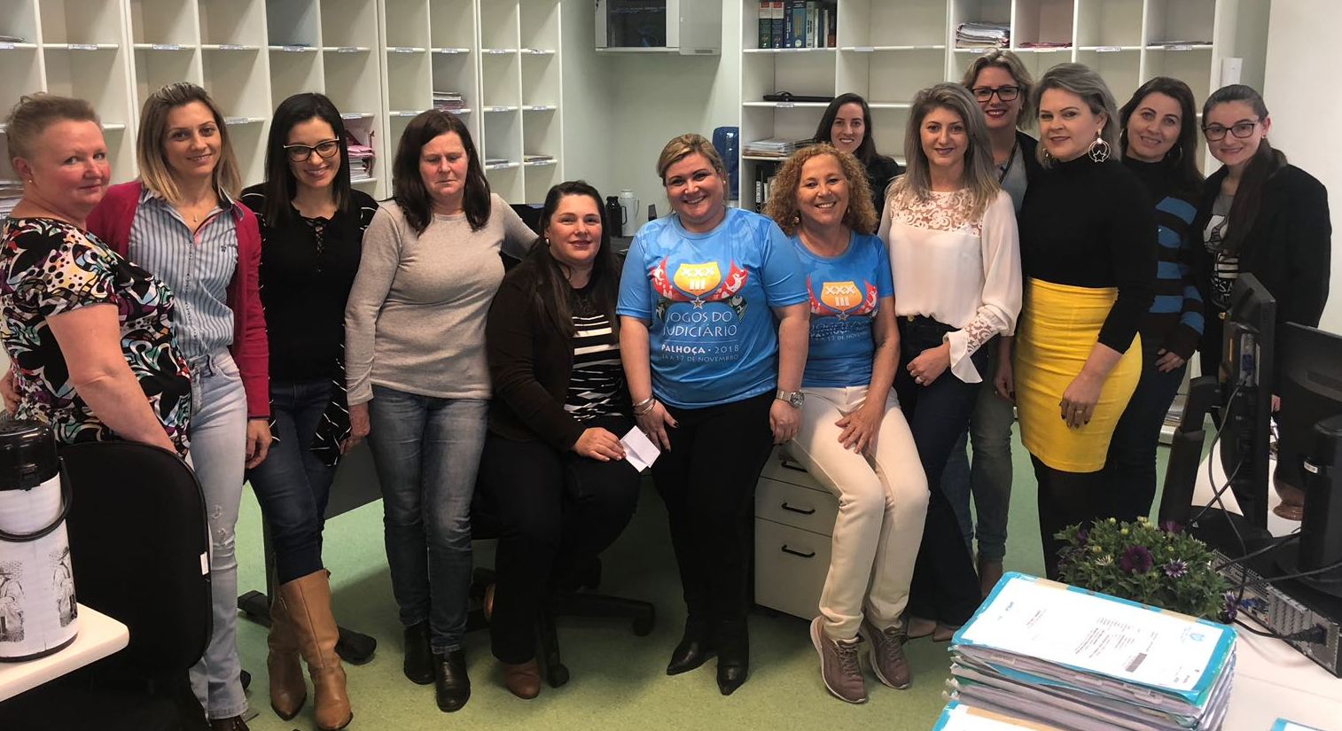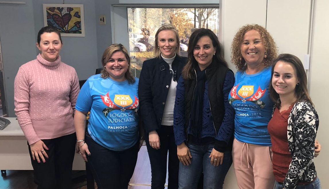 O SINJUSC iniciou a semana nas comarcas para divulgar os Jogos do Judiciário 2018, Encontro de Mulheres e debater a pautas da categoria. Ontem a agenda foi em Chapecó e hoje segue por Itapiranga, Descanso e São Miguel. Sobre os jogos, os atletas inscritos estão liberados para participação, sem a necessidade de compensar horas, conforme pedido do SINJUSC. Neste ano, as competições ocorrem de 14 a 17 de novembro, em Palhoça. Em breve, serão abertas as inscrições dos atletas e equipes.