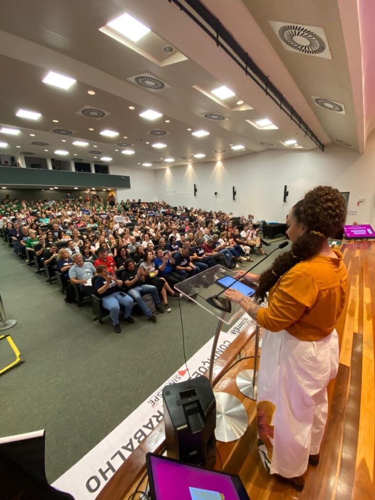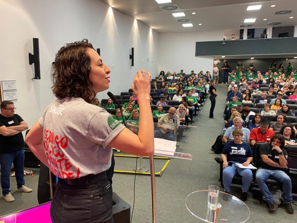 Já a presidenta do SINJUSC, Carolina Rodrigues Costa, disse durante o ato que o serviço público é feito por servidor e não por computadores e salas. “A gente quer estrutura e condições para poder trabalhar, mas uma sala vazia, por mais equipada que esteja, não é serviço público. Por outro lado, um servidor em uma tenda atendendo outra pessoa em qualquer parte da cidade, isso é serviço público” – alertou Carolina.