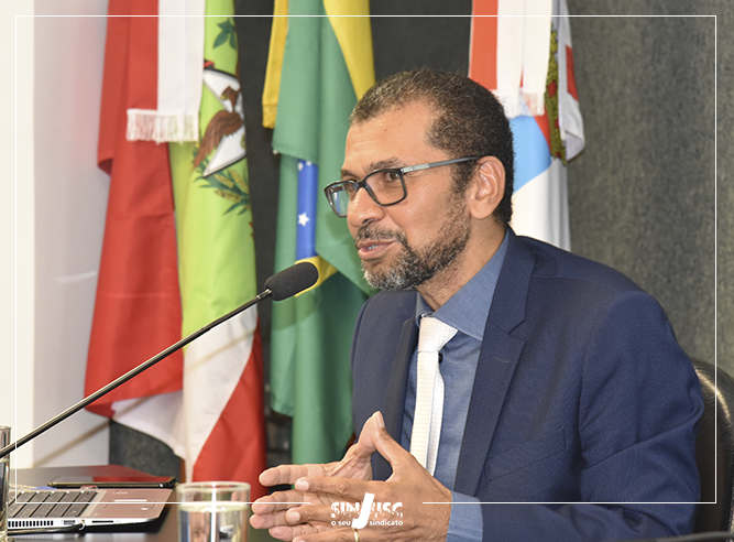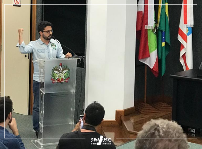 Em seu pronunciamento, representando os trabalhadores do judiciário catarinense, o presidente do SINJUSC, Neto Puerta, disse que muitos deputados que se posicionam favoráveis a reforma, sequer conhecem seus argumentos da PEC. “Que tipo de igual consideração pelo destino das pessoas eles têm? Isso é parte de um projeto político de enfraquecimento do serviço público, indo além daquilo que circula na mídia. Querem aprovar a toque de caixa uma reforma que tem vários problemas, como a situação da aposentadoria por invalidez, a revogação do rol de doenças, as regras de transição, que é pior do que a PEC 103/2019 aprovado no Congresso Nacional. Enfim, são muitos pontos que precisam ser debatidos”, disse Neto.