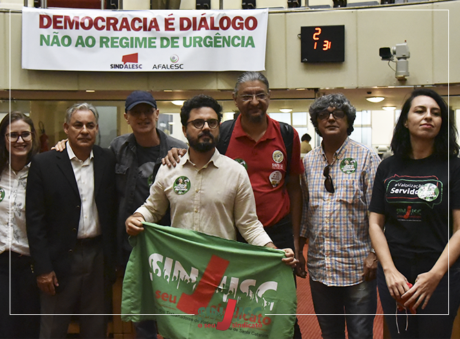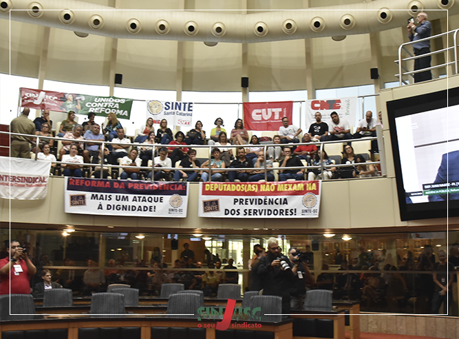 Servidores públicos estaduais de diversas categorias lotaram o Plenário da Alesc. Os sindicatos e as entidades representativas reivindicaram a retirada do regime de urgência da PEC 13/2019 e o PLC 33/2019. Para debater projetos tão importantes é preciso um tempo hábil para discutir a matéria.
