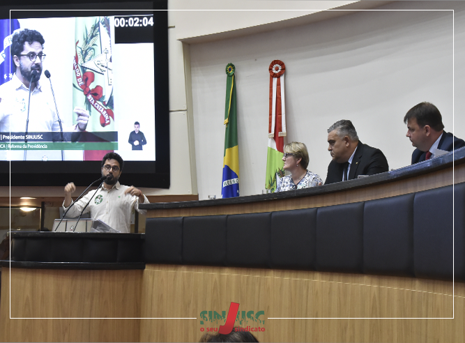Além disso, o Presidente abordou de forma técnica as falhas que existem nos dados apresentados pelo atual Governo, sendo um deles a questão do cálculo atuarial. “O cálculo apresentado do déficit da previdência, na avaliação atuarial 2019 – o Regime Próprio de Previdência (RPPS/SC) – Servidor, usou como base a taxa real de juros de 0%. Em contrapartida existe uma portaria do Ministério da Fazenda nº 464 de 2018 onde diz que a taxa real de juros para fazer Avaliação Atuarial deve ser de 4%. Isso significa que utilizando a taxa 0% se superestima a questão do déficit” esclarece Puerta.