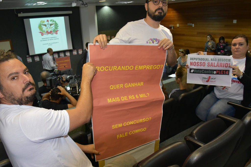 O Sindicato já apresentou ao Deputado Dirceu Dresch uma emenda para aprovar a criação dos cargos comissionados de trabalhadores efetivos. O SINJUSC é a favor da correção salarial para os 402 concursados segundos assessores, mas contra a criação dos cargos comissionados sem concurso público. O PLC 14 propõe isso conjuntamente, justamente para dividir a categoria. De um lado, o Tribunal de Justiça regulariza uma situação, de outra, pede silenciamento para criar quase 500 novas vagas de apadrinhamento, e na “nota de rodapé” corta o salário de quase 8 mil famílias, que terão R$ 300 a menos em junho.